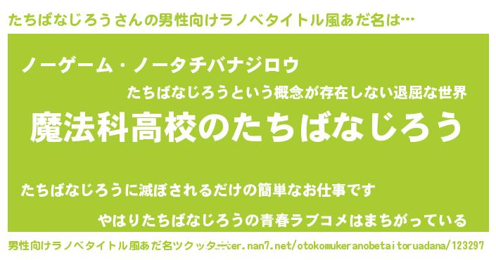 | 女子向けラノベタイトル風あだ名 | 『たちばなじろうなんてお断りですっ。』 |