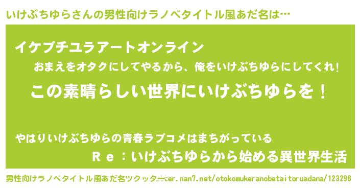 | 意味不明あだ名 | 『住所不定無職いけぶちゆら(40歳)』 |