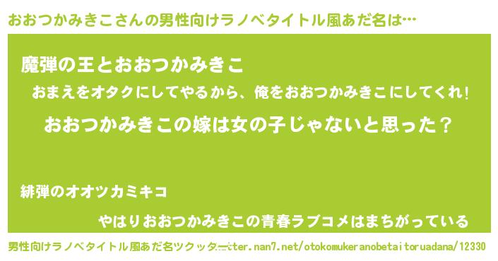 | 女子向けラノベタイトル風あだ名 | 『おおつかみきこ様がみてる』 |