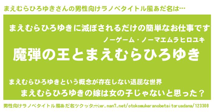 | 意味不明あだ名 | 『住所不定無職まえむらひろゆき(53歳)』 |