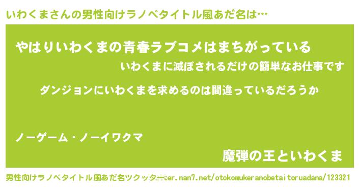 | 意味不明あだ名 | 『とにかく怪しいいわくま』 |