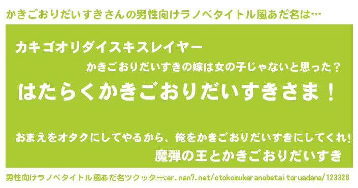 | 伝説のあだ名 | 『孤高の遊び人かきごおりだいすき』 |