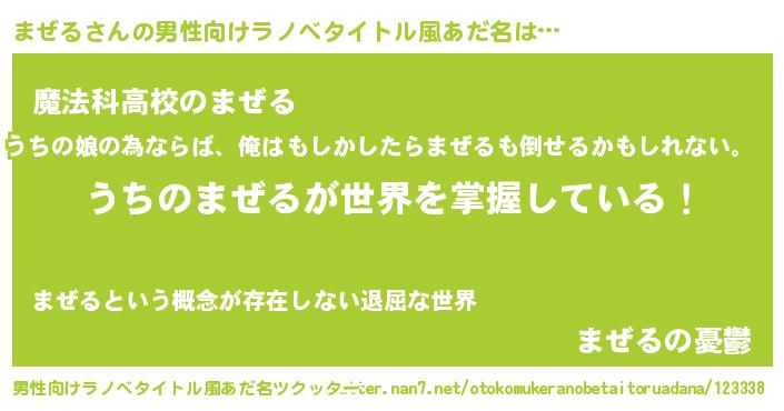 | 女子向けラノベタイトル風あだ名 | 『男装まぜるの憂鬱な任務』 |