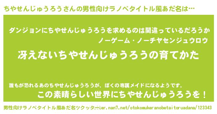 | ヘコむあだ名 | 『ちやぷりん』『ちやせんじゅうろう(苦笑)』 |