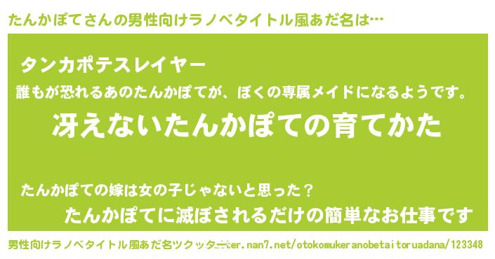 | 女子向けラノベタイトル風あだ名 | 『シンデレラたんかぽて家の靴箱館』 |