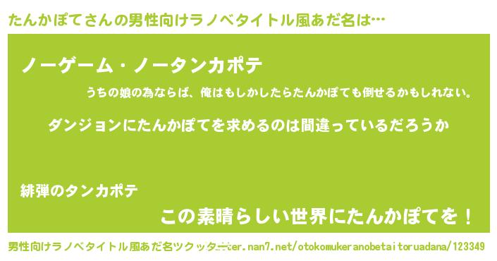 | 胡散臭い通販商品みたいなあだ名 | 『信頼と実績のペンダント…その名も「たんかぽて」』 |