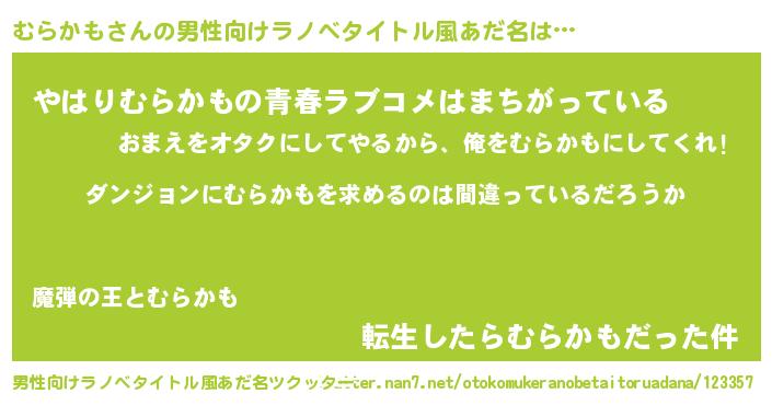 | 意味不明あだ名 | 『とにかく怪しいむらかも』 |