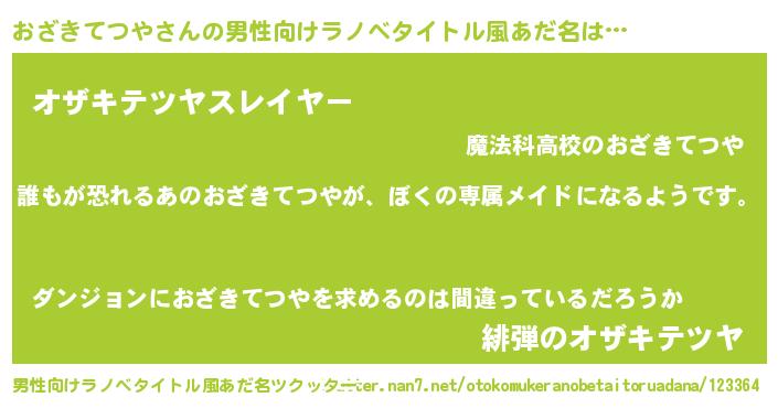 | 胡散臭い通販商品みたいなあだ名 | 『来世でも幸せになれる健康食品…その名も「おざきてつや」』 |