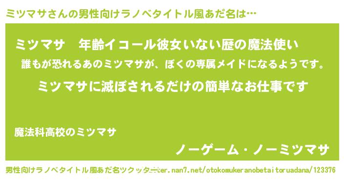| 意味不明あだ名 | 『ヨモギ科ミツマサ属』『自称ミツマサ』 |