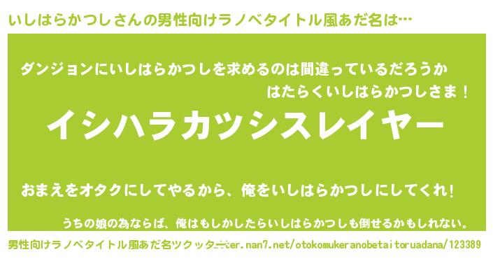 | 胡散臭い通販商品みたいなあだ名 | 『信頼と実績のペンダント…その名も「いしはらかつし」』 |