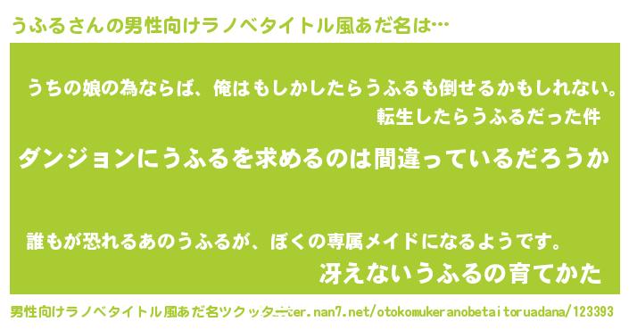| 女子向けラノベタイトル風あだ名 | 『うふるは平凡を望む』 |