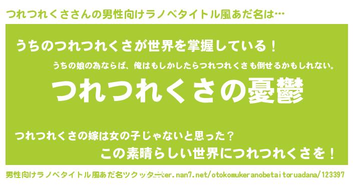 | 女子向けラノベタイトル風あだ名 | 『つれつれくさ姫と円卓の騎士』 |