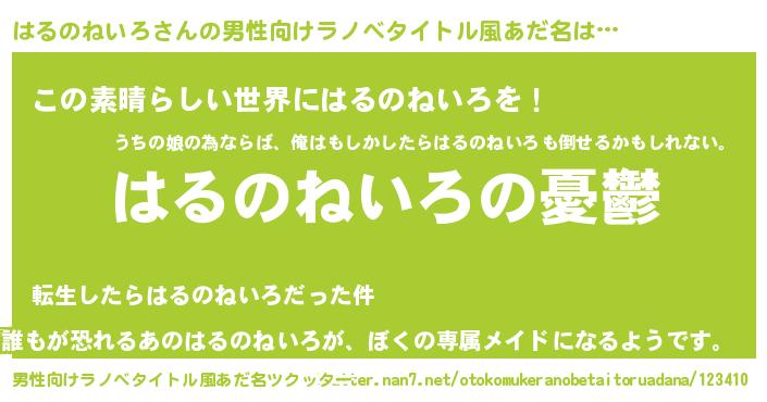 | 女子向けラノベタイトル風あだ名 | 『(仮)はるのねいろのやんごとなき事情』 |
