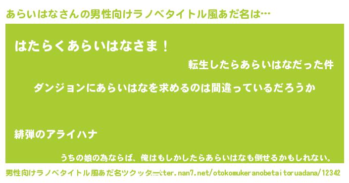 | 女子向けラノベタイトル風あだ名 | 『あらいはなは平凡を望む』 |