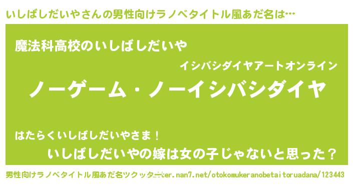 | 女子向けラノベタイトル風あだ名 | 『死神いしばしだいやの再婚』 |