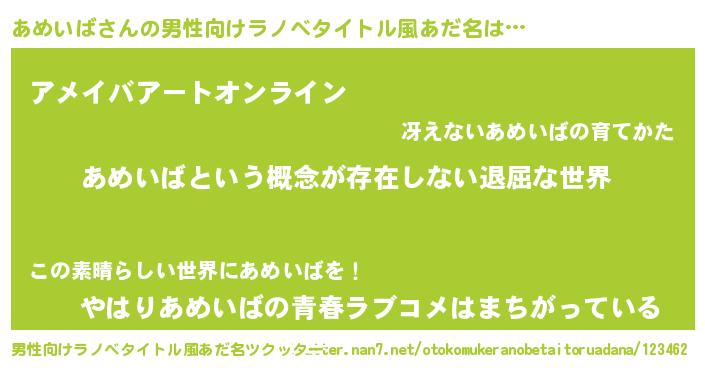 | ヘコむあだ名 | 『あめいば(笑)』『あめにー』 |