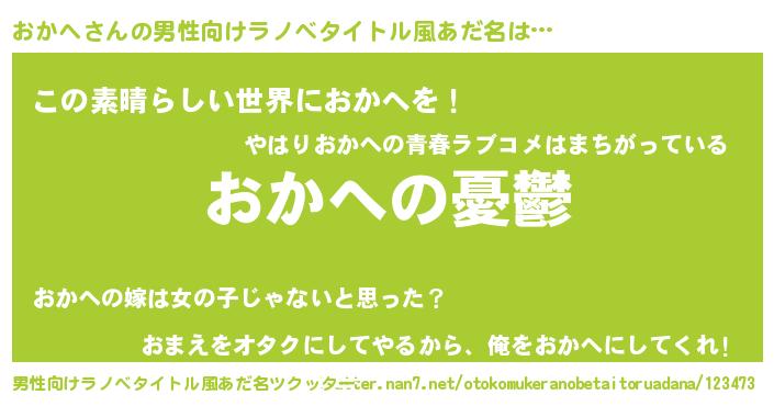 | 女子向けラノベタイトル風あだ名 | 『(仮)おかへのやんごとなき事情』 |