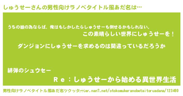| 胡散臭い通販商品みたいなあだ名 | 『信頼と実績のネックレス…その名も「しゅうせー」』 |