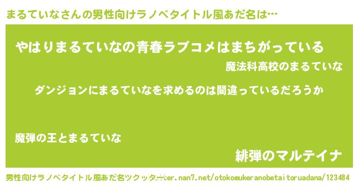 | 女子向けラノベタイトル風あだ名 | 『まるていなは平凡を望む』 |