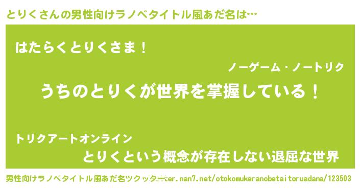 | ヘコむあだ名 | 『とりく(爆)』『とりにゅー』 |