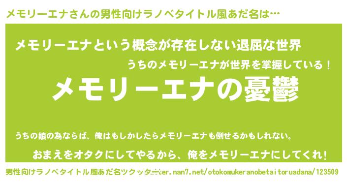 | ヘコむあだ名 | 『メモにー』『メモリーエナ(小並感)』 |