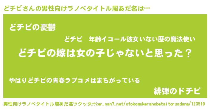| 女子向けラノベタイトル風あだ名 | 『どチビ様がみてる』『どチビ伯爵の花嫁』 |