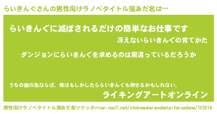 らいきんぐさんの男性向けラノベタイトル風あだ名をツクッター!