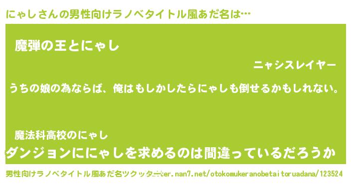 | 女子向けラノベタイトル風あだ名 | 『にゃしの婚約者』『にゃしは平凡を望む』 |