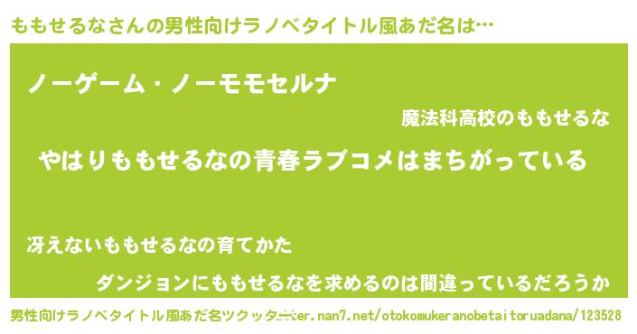 | 女子向けラノベタイトル風あだ名 | 『ももせるな伯爵の花嫁』 |