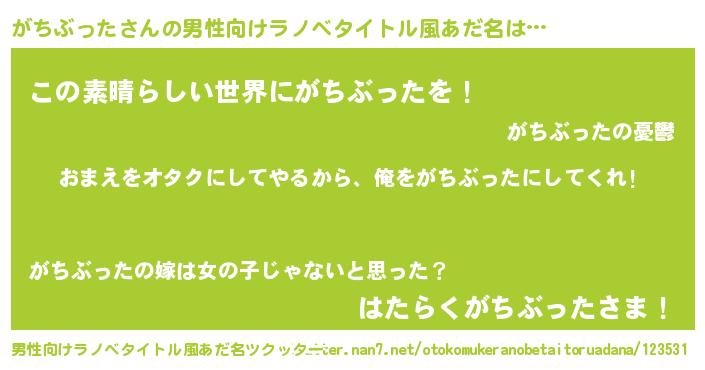 | 女子向けラノベタイトル風あだ名 | 『がちぶった恋絵巻』 |