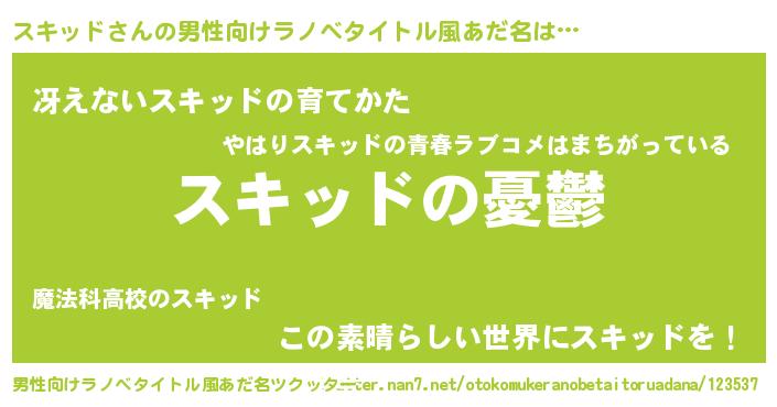 | 胡散臭い通販商品みたいなあだ名 | 『必ず成功する水晶球…その名も「スキッド」』 |