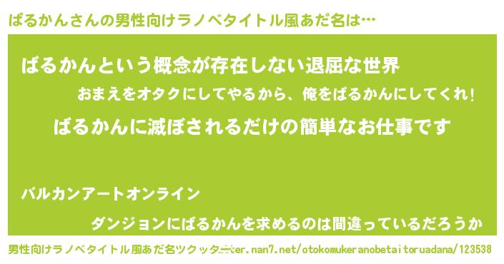 ばるかんさんの男性向けラノベタイトル風あだ名をツクッター!