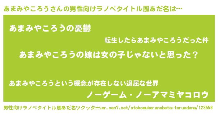 | 女子向けラノベタイトル風あだ名 | 『あまみやころうの卵を拾いまして』 |