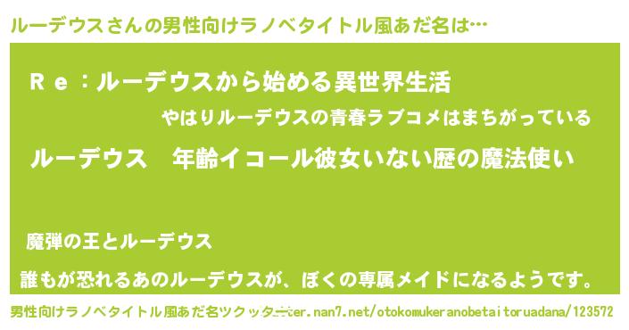 | 胡散臭い通販商品みたいなあだ名 | 『芸能人もオススメする高麗人参…その名も「ルーデウス」』 |