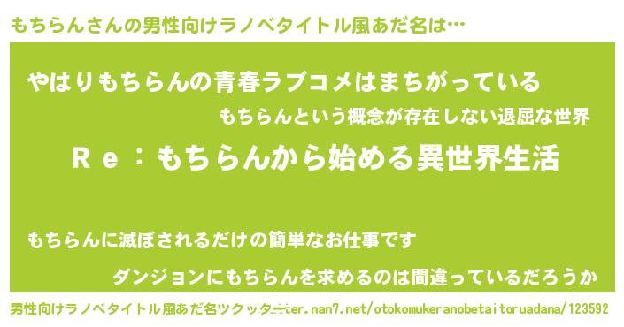 | 女子向けラノベタイトル風あだ名 | 『もちらんストレイドッグス』 |