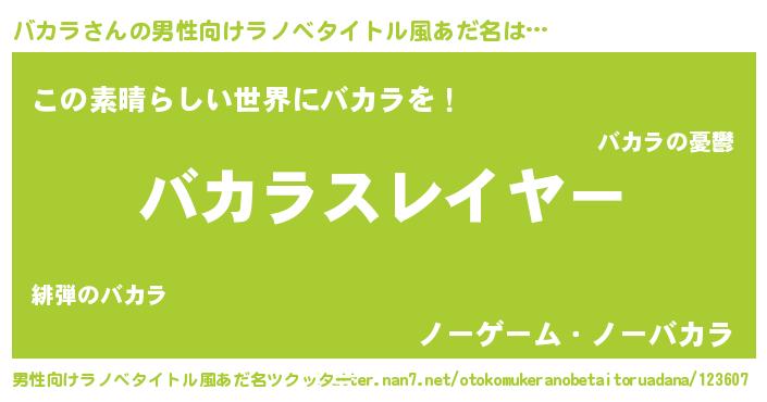 | ヒーロー風カッコイイあだ名 | 『仮面バカダー』『天空の使者バカラ』 |