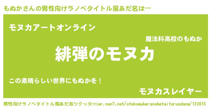 | 女子向けラノベタイトル風あだ名 | 『シンデレラもぬか家の靴箱館』 |