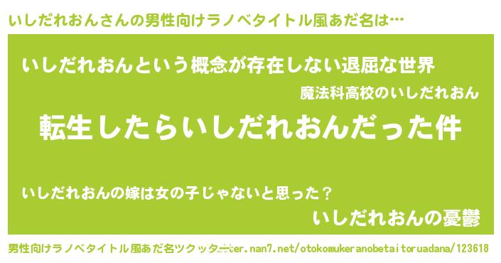 | 女子向けラノベタイトル風あだ名 | 『いしだれおんの玉の輿計画!』 |