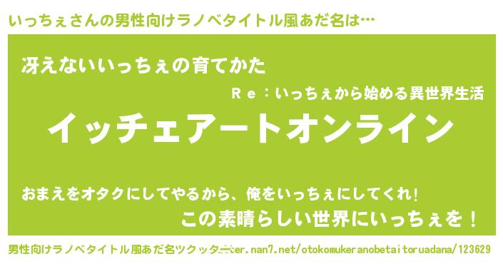 | 胡散臭い通販商品みたいなあだ名 | 『モテモテ間違いなしブレスレット…その名も「いっちぇ」』 |