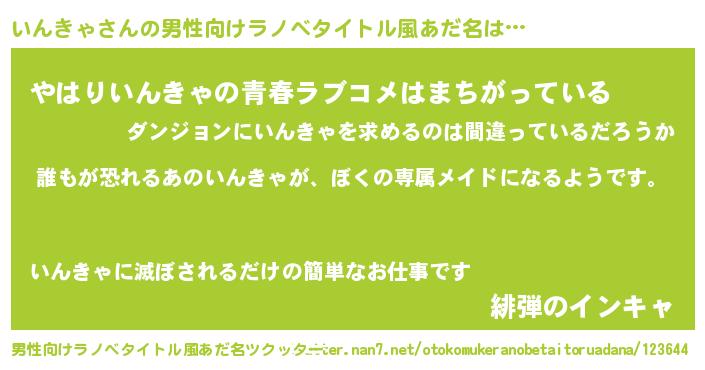 | 女子向けラノベタイトル風あだ名 | 『異世界でカフェいんきゃを開店しました。』 |