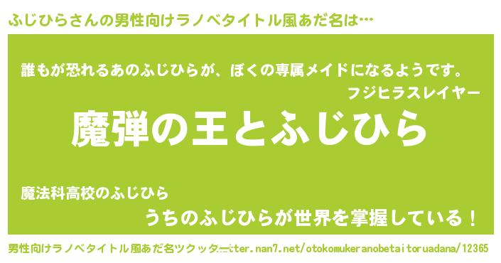 | 女子向けラノベタイトル風あだ名 | 『乙女ゲームの破滅フラグしかない悪役ふじひらに転生してしまった…』 |