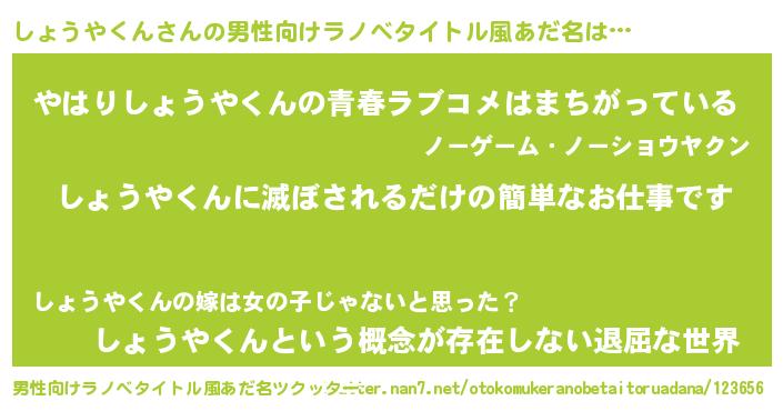 | ファンタジー風あだ名 | 『エターナルショウヤクンー』 |