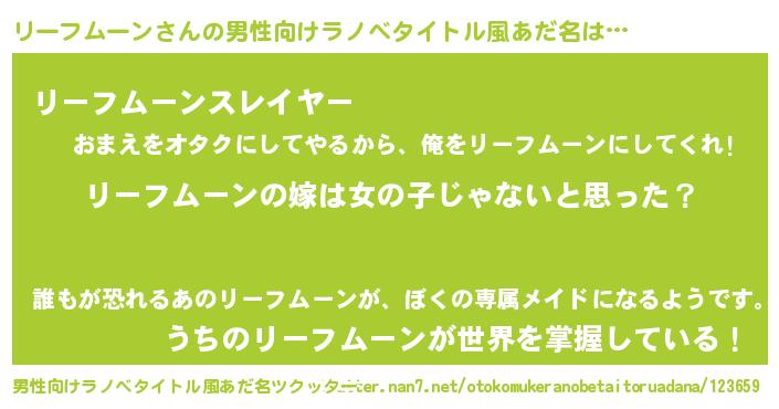 | 女子向けラノベタイトル風あだ名 | 『リーフムーン様がみてる』 |