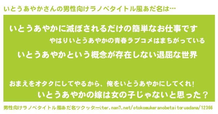 | 女子向けラノベタイトル風あだ名 | 『異世界で失敗しない100のいとうあやか』 |