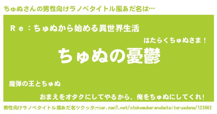 | 胡散臭い通販商品みたいなあだ名 | 『モテモテ間違いなし霊験あらたかなお札…その名も「ちゅぬ」』 |