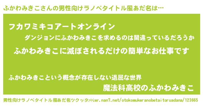 | ヒーロー風カッコイイあだ名 | 『スーパーフカワミキコ』『魔戒騎士フカ』 |