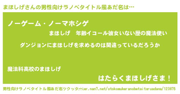 | 胡散臭い通販商品みたいなあだ名 | 『信頼と実績のサプリメント…その名も「まほしげ」』 |