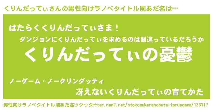 | 胡散臭い通販商品みたいなあだ名 | 『必ず成功する水晶球…その名も「くりんだってぃ」』 |