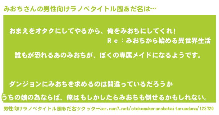 | ヘコむあだ名 | 『みおち(苦笑)』『牛乳』 |