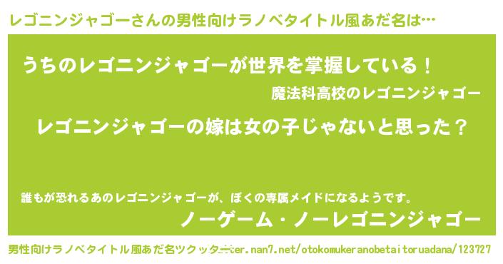 | 意味不明あだ名 | 『とにかく怪しいレゴニンジャゴー』 |